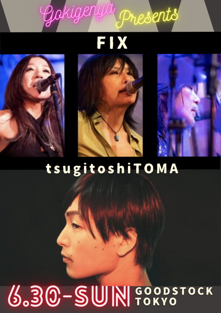 [LIVE] 24.6.30 sun 大岡山 GOODSTOCK TOKYO|GOKIGENYA PRESENTS 2024 5/12 出演 FIX tsugitoshiTOMA OPEN/START 18:30/19:00ADV 2,500yen + 1DDOOR 3,000yen + 1D GOODSTOCK TOKYO サイト チケット予約サイト(当サイトからもご予約できます) INFO シェアしてね! URLをコピーしました! FIXの音楽を聴いてみてください [RADIO] コマラジ(狛江FM)出演情報|6/20 12:00~ author FIX Offical Site